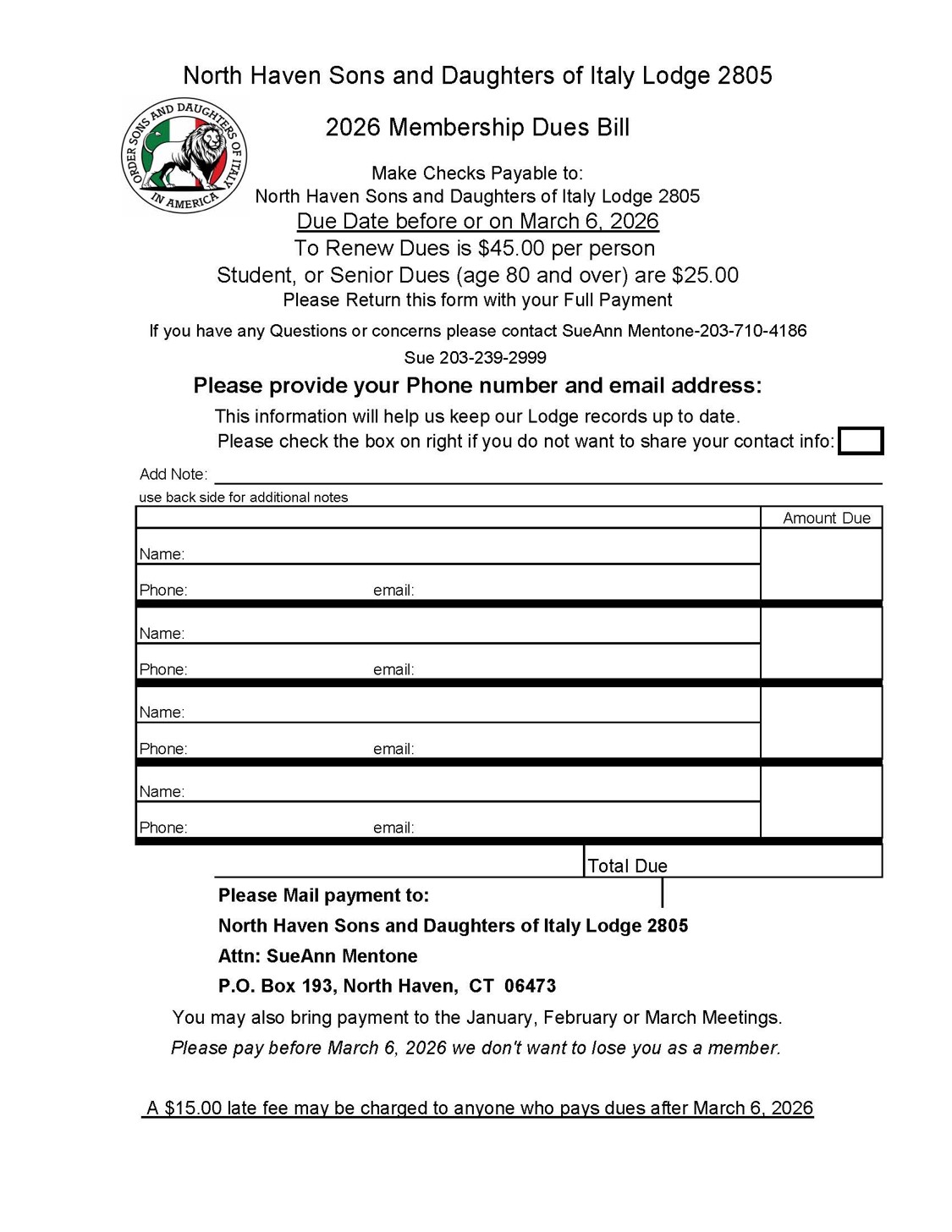 Copyright © 2026 North Haven Sons and Daughters of Italy Lodge 2805 - All Rights Reserved.